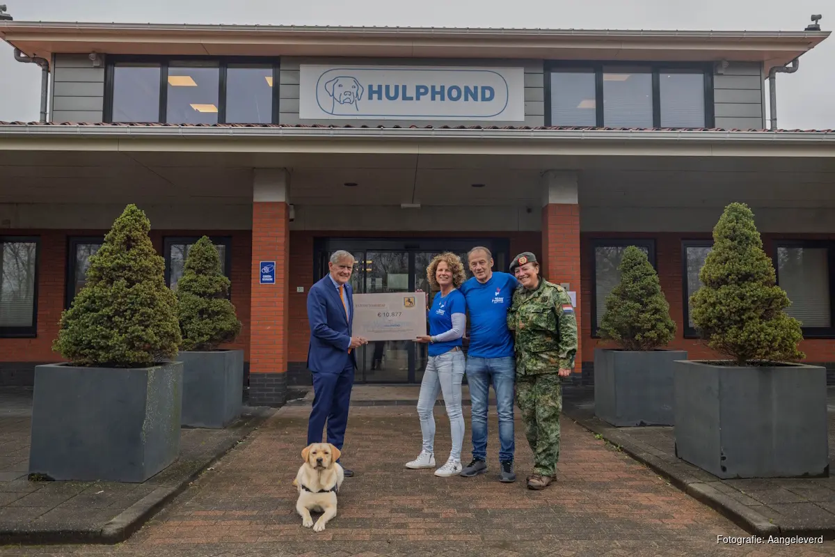 KORNWERDERZAND - Ter gelegenheid van 80 jaar Vrijheid haalden estafettelopers uit Sneek en omgeving, samen met militairen van het Regiment Infanterie Prins Johan Willem Friso uit Havelte, het bevrijdingsvuur uit Normandië. De lopers lieten zich sponsoren en haalden geld op voor Hulphond Nederland. Op 24 februari 2026 werd een cheque van € 10.877 overhandigd aan Peter van Uhm, ambassadeur van de stichting.